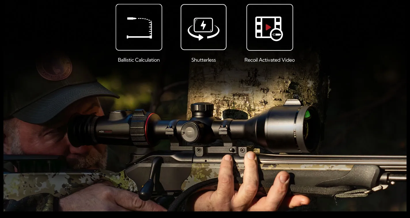 ACE obsahuje funkcie ktoré Vám spríjemnia a zjednodušia lov. Sú to: balistické výpočty, automatické vypnutie obrazovky, nahrávanie videa aktivovaného spätným rázom a plynulé zobrazenie bez rušivej uzávierky obrazu, vďaka čomu je možné dosiahnuť dokonalý lov.